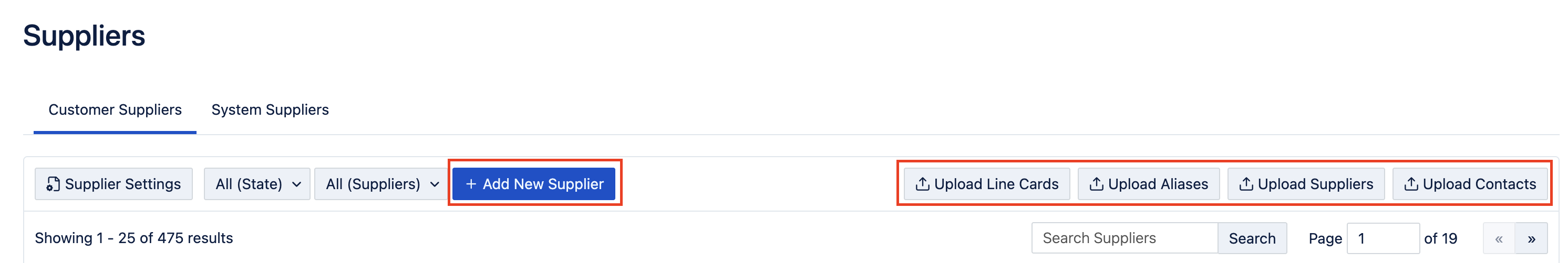 As needed, you can manage the Line Cards for your Suppliers. The functionality of what's editable will vary depending on if they're a system supplier or a supplier that you manually added.