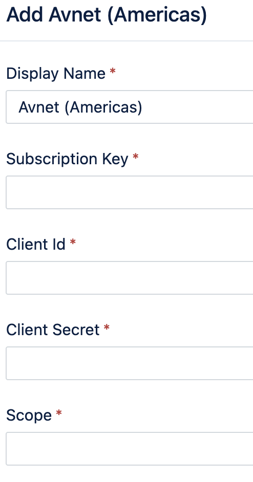 - If you don't know you account number please contact AvnetAPI@AVNET.COM