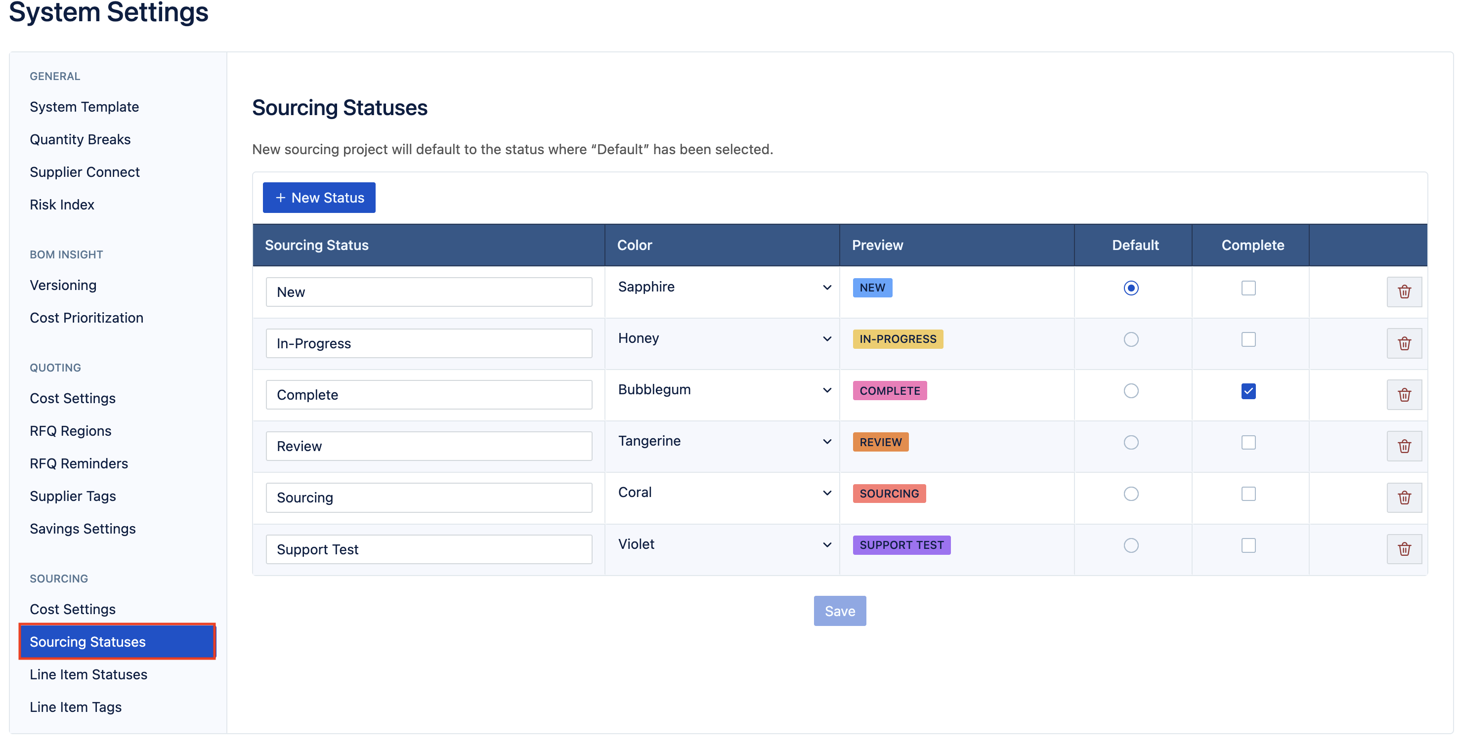 What is it? - We've added the ability to create custom statuses within Supplyframe's newest app- Sourcing