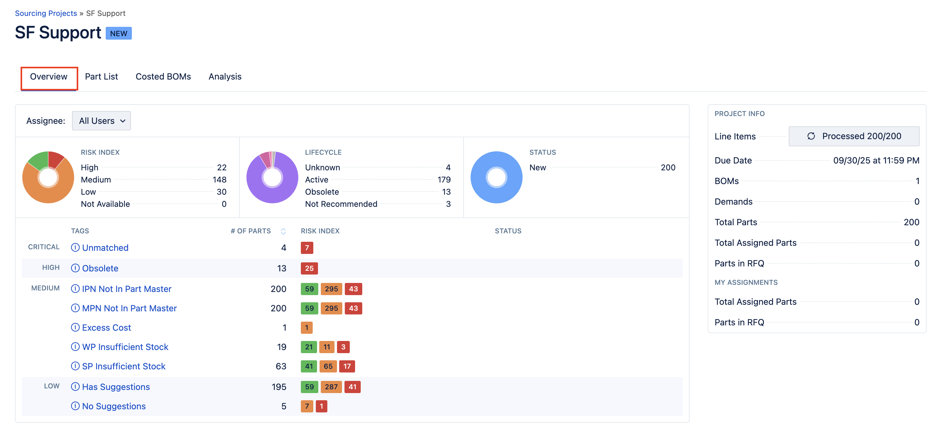 What is it? - We've adjusted the newest NPI-DS's module, Sourcing, to use 'Overview' as its homepage- changing from previously showing 'Parts List' first.
