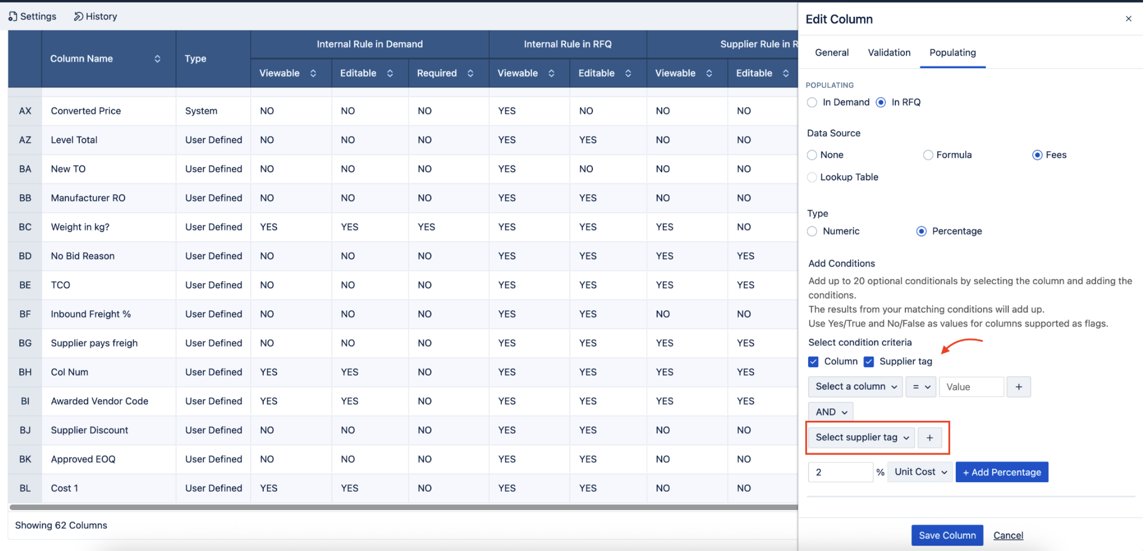 What is it? - Supplier tags can now be used as criteria when configuring Formulas & Fees that calculate inside RFQs.