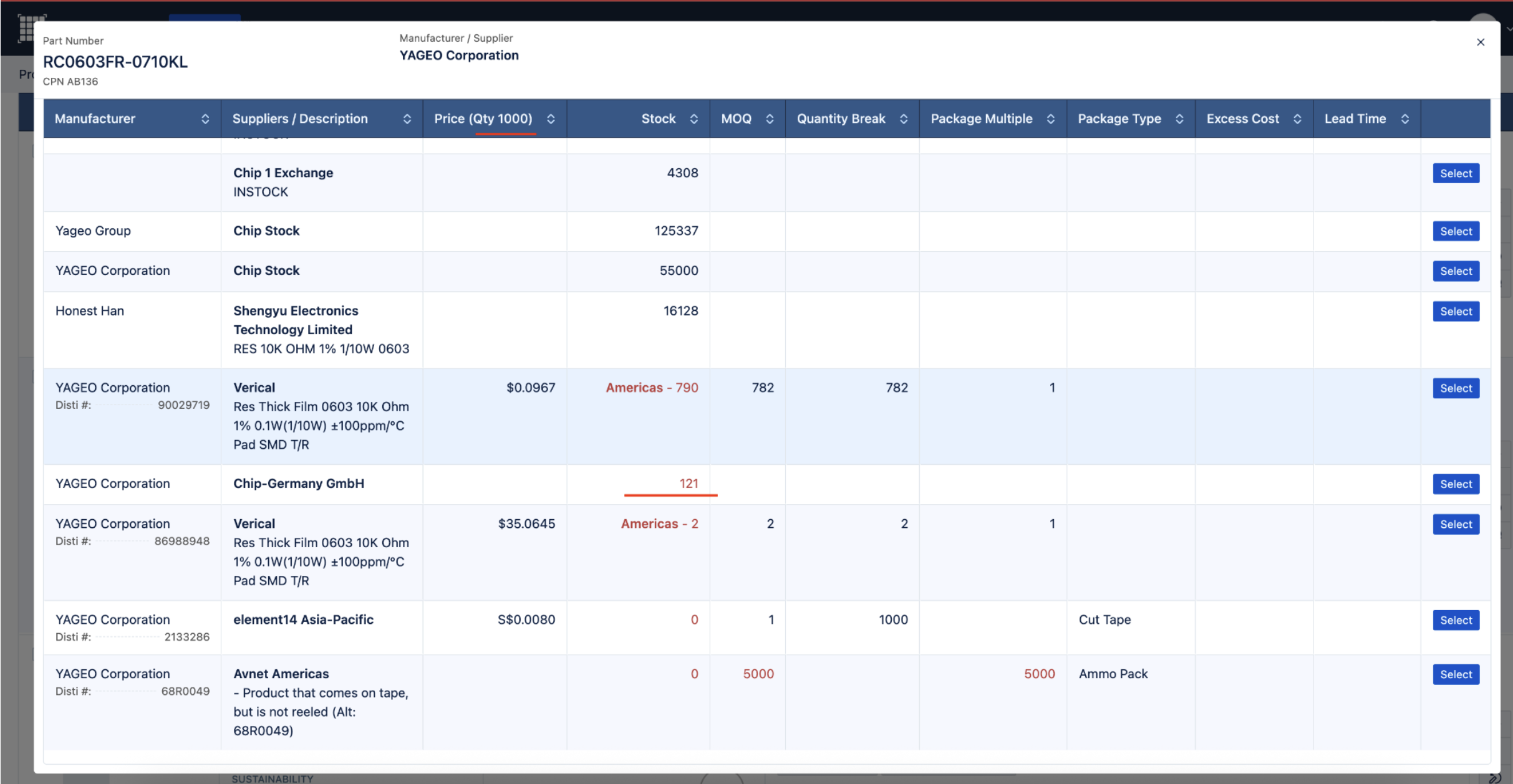 How does it work? - Previously, if “Meet MOQ” or “Match Stock” were selected for Specific Price and Web Price, in addition to Supplyframe not picking a price from such items, these results will also be filtered out in the modal. These items will now be visible in the price modal.