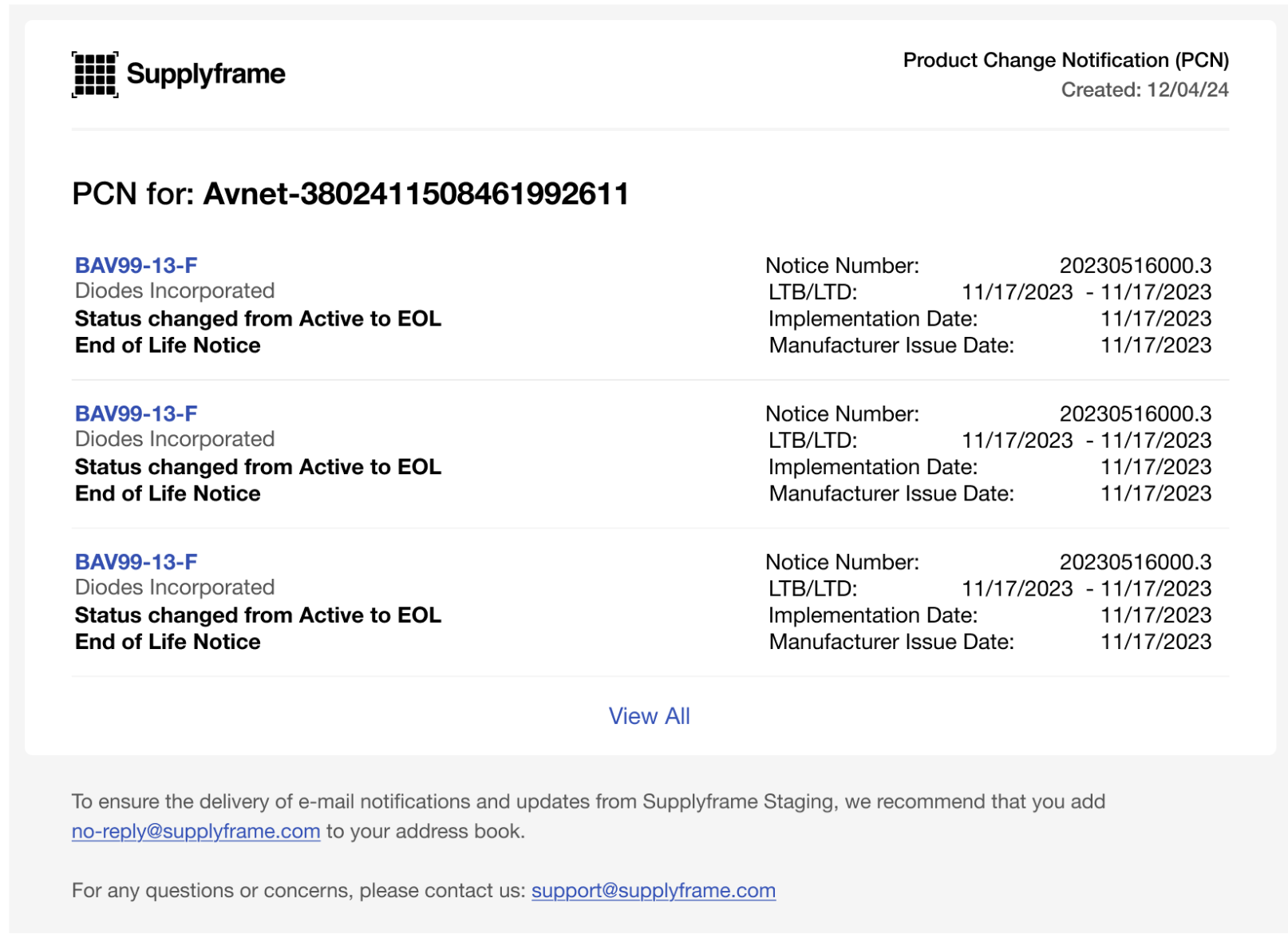 Why do I need this? - Previously, PCN emails only included BOM Name, Created Date, MPN, Manufacturer, Notice Type, Description