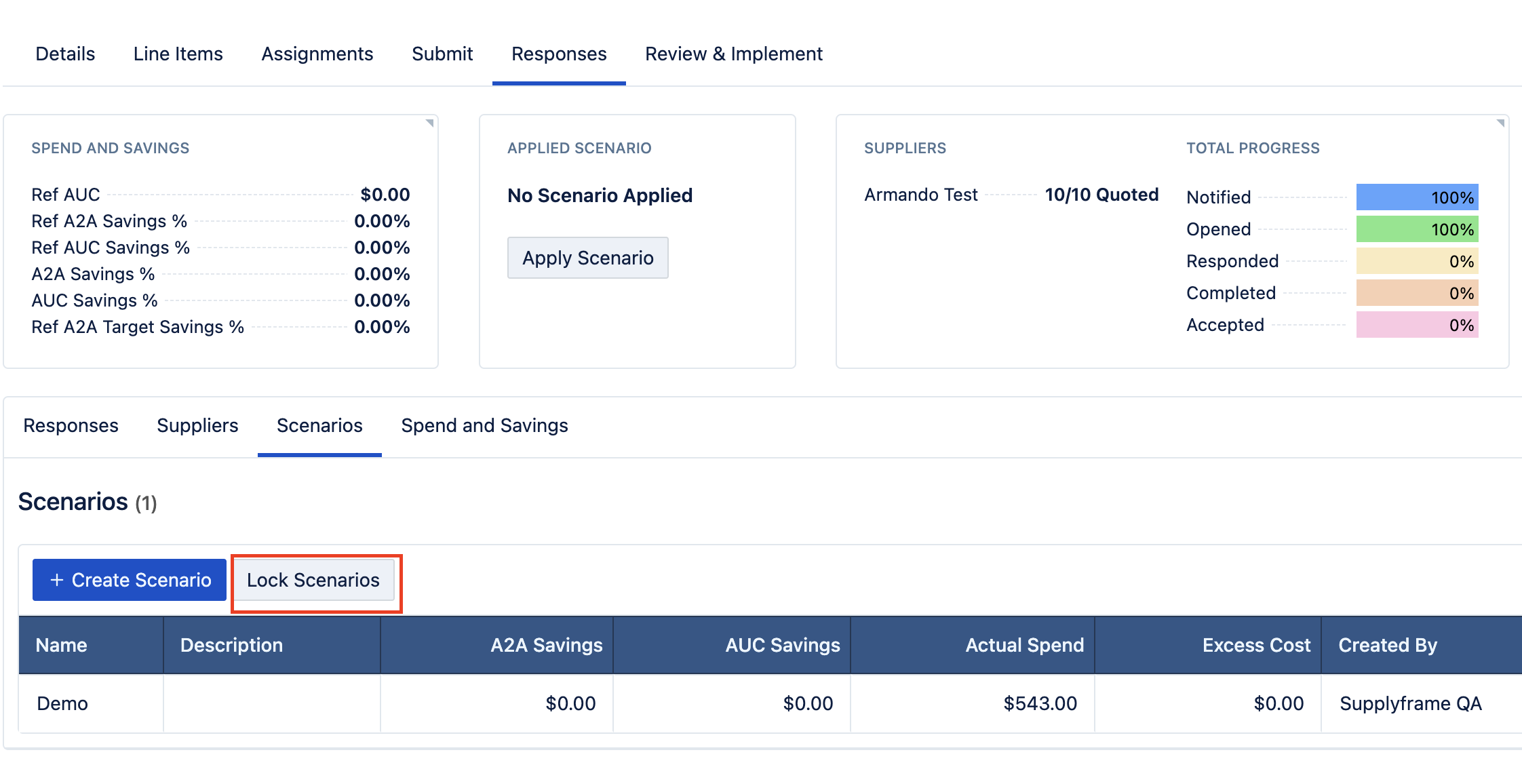 How does it work - Admins and users with “Create RFQ” permissions can now lock the ability to apply scenarios to prevent overwriting manual pricing edits.