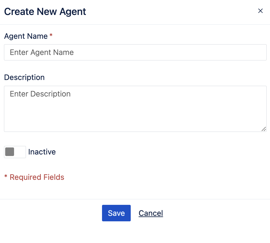 Please Note: all new Agents are set to 'inactive' by default, to use an agent within Sourcing, you must set your 'Agent' to 'Active' by clicking the slider button below the description.