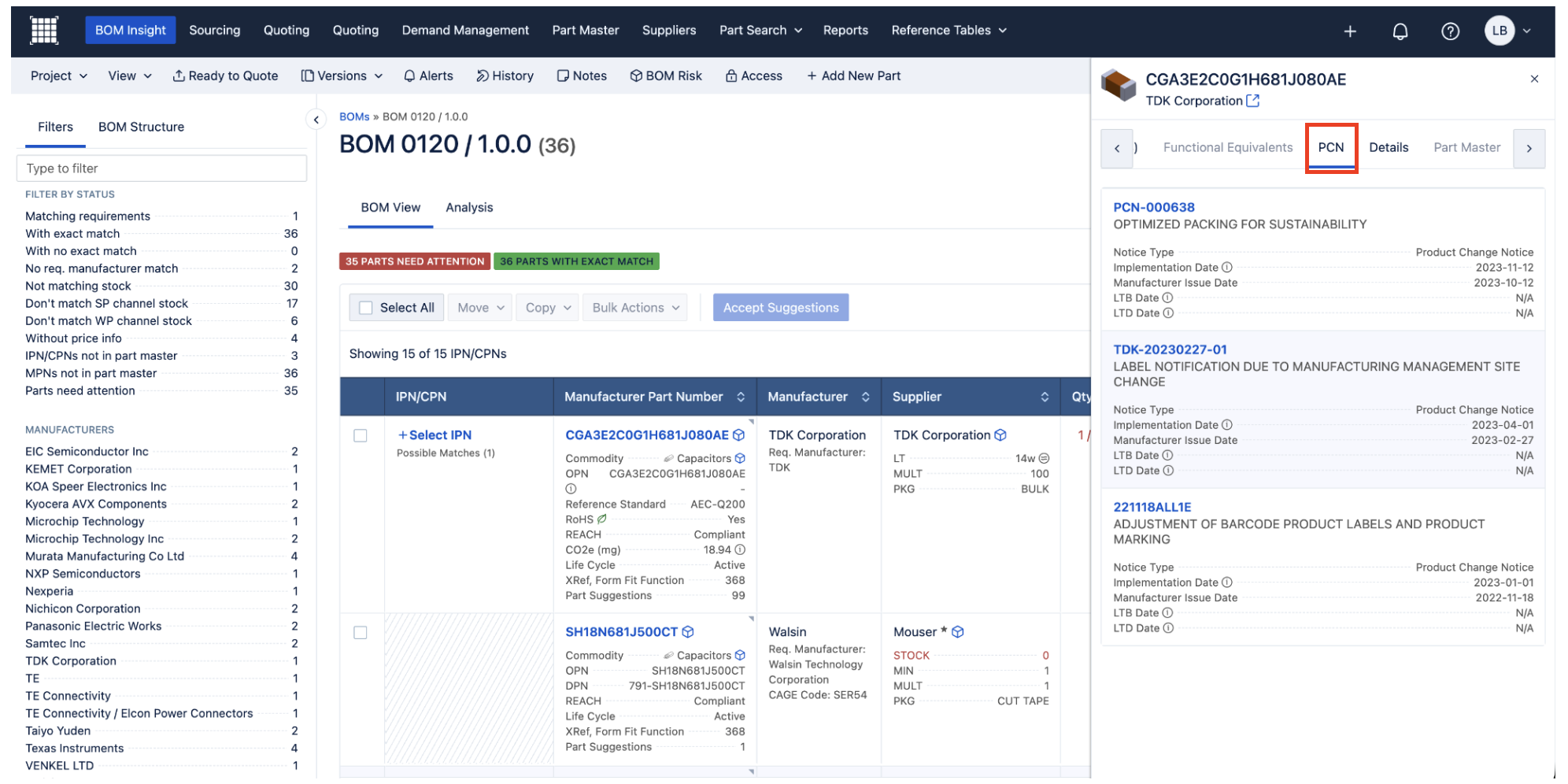 Where can I find it? - You'll find this when clicking into the Part Intelligence icon for a specific part, and then clicking the 'PCN' tab in the right-side panel.